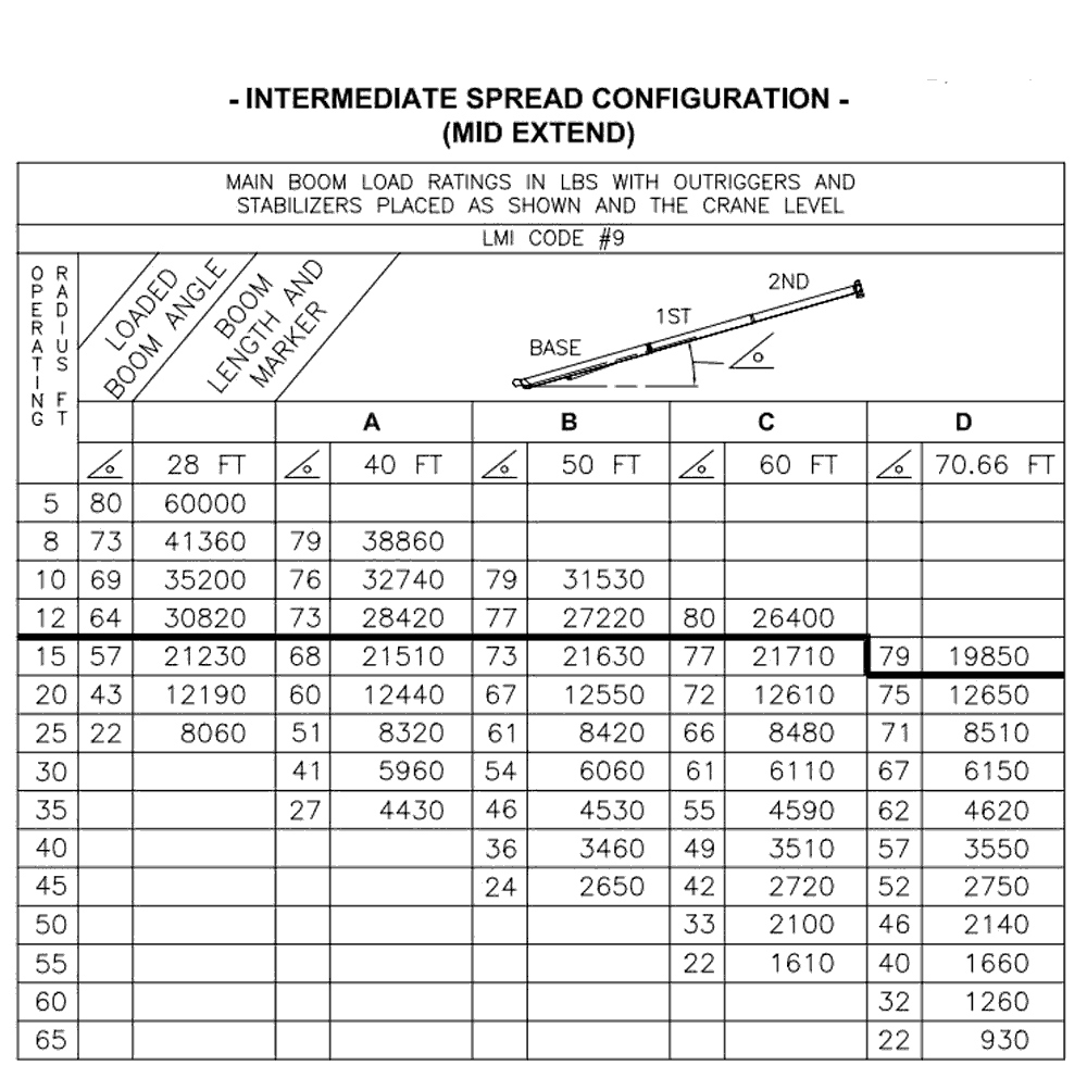 Warning: All load, rating, and capacity charts / images shown on this site are for general reference only! Always consult with your equipment manufacturer reguarding rated load capcity of your crane prior to operation.