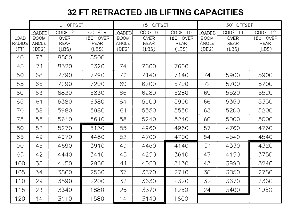Warning: All load, rating, and capacity charts / images shown on this site are for general reference only! Always consult with your equipment manufacturer reguarding rated load capcity of your crane prior to operation.