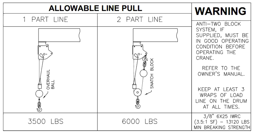 Warning: All load, rating, and capacity charts / images shown on this site are for general reference only! Always consult with your equipment manufacturer reguarding rated load capcity of your crane prior to operation.