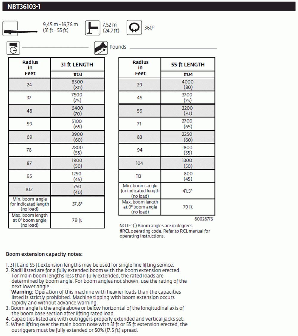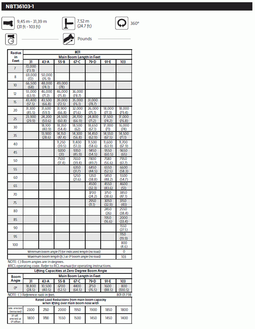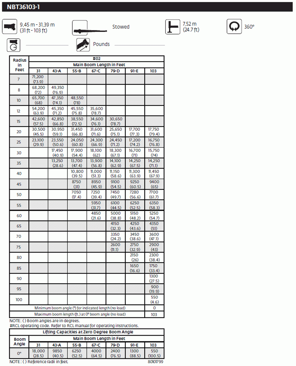 Warning: All load, rating, and capacity charts / images shown on this site are for general reference only! Always consult with your equipment manufacturer reguarding rated load capcity of your crane prior to operation.