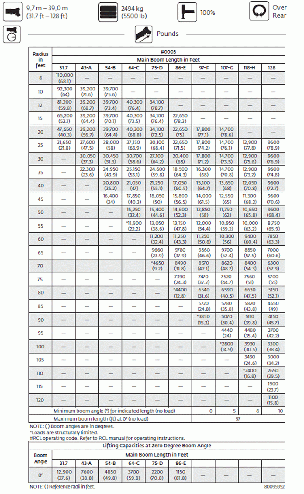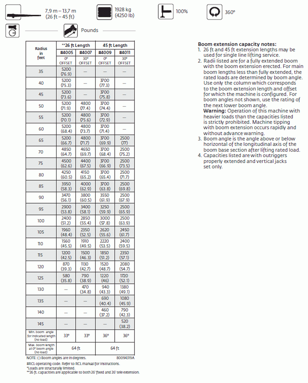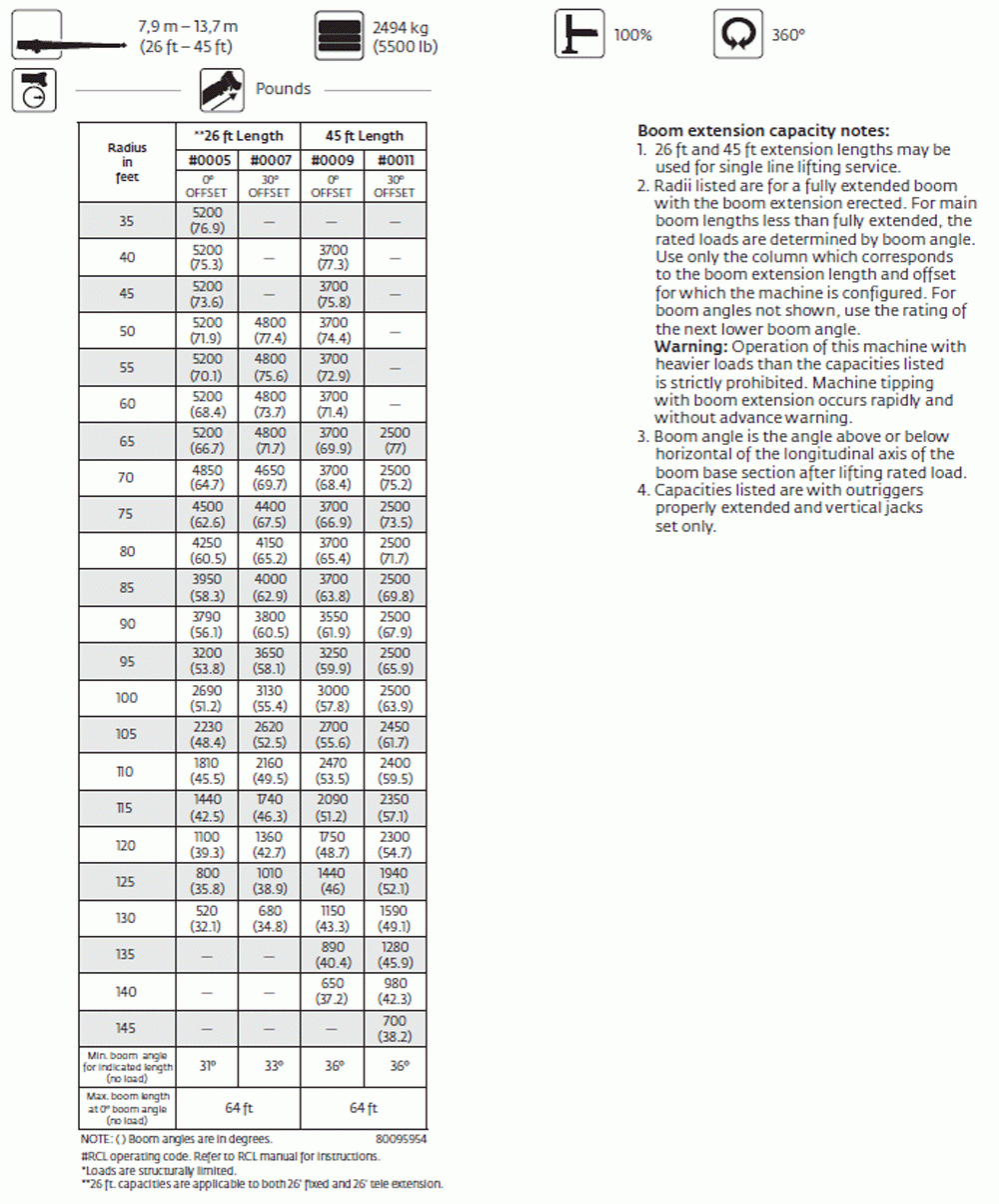 Warning: All load, rating, and capacity charts / images shown on this site are for general reference only! Always consult with your equipment manufacturer reguarding rated load capcity of your crane prior to operation.