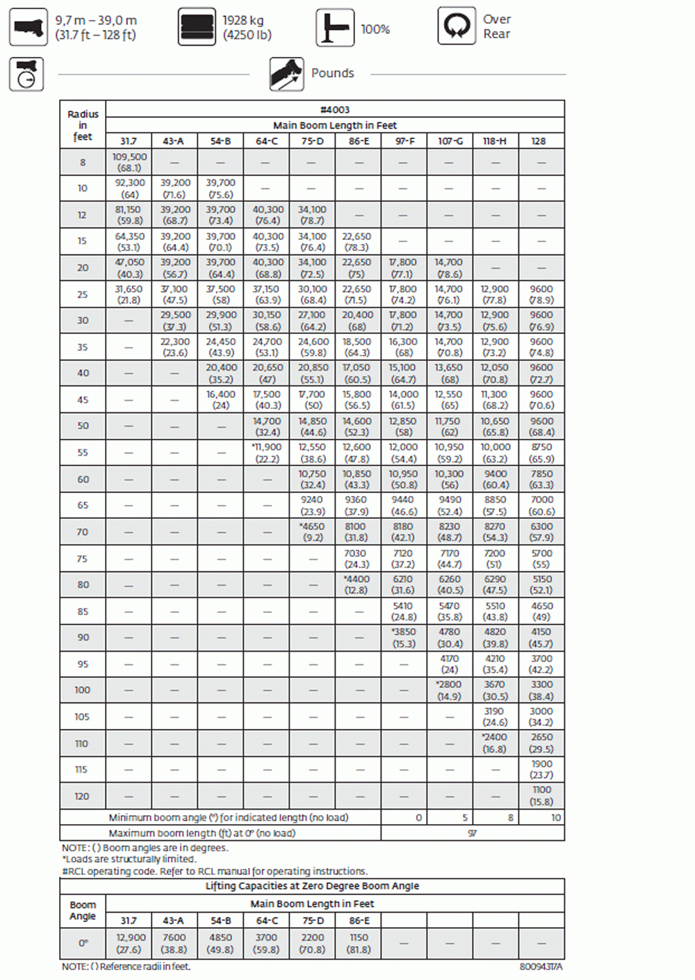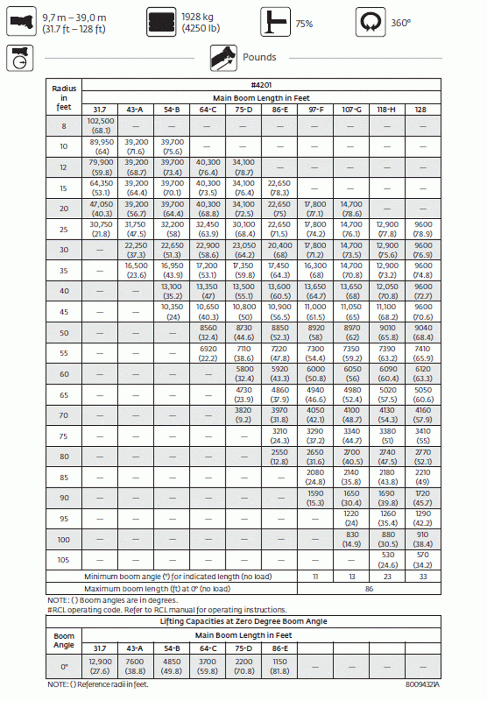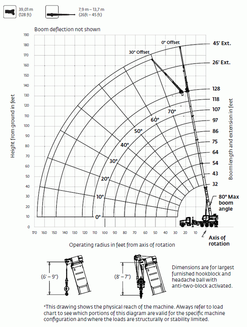 Warning: All load, rating, and capacity charts / images shown on this site are for general reference only! Always consult with your equipment manufacturer reguarding rated load capcity of your crane prior to operation.
